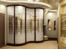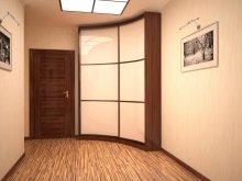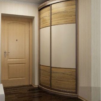 - Rounded option. Some sellers also like to call it radial or radial. This is one of the most expensive and least common options in Russian apartments. A distinctive feature of such a built-in cabinet is a rounded convex or wavy shape. Sliding doors also repeat the shape of the cabinet. As a rule, these built-in wardrobes are bought to complement some specific interior in the apartment.