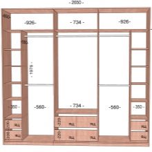 - Width. Typically, for the manufacture of built-in cabinets of this type, it is the chipboard sheets that are used as the material. Since the standard chipboard sheet is limited to 280 cm, the width of the built-in cabinet itself cannot be larger. In rare cases, manufacturers resort to special partitions to increase the size of furniture. In the case of using natural wood in the manufacture of cabinets of the "maxi" type, the width of the model is limited only by the desire of the customer.