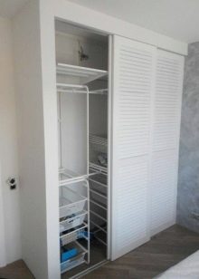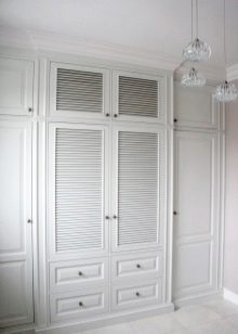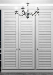 - Louvred built-in wardrobes. This is not the most common option on the Russian market - the first analogues were designed in countries with a hot and humid climate. The special design of the cabinet made it possible to provide good ventilation inside the furniture and to prevent sunlight. Thanks to this approach, the chance of clothing becoming damp, deformed or having an unpleasant odor was eliminated.