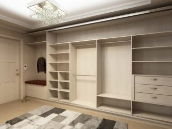 The presented version of the built-in wardrobe perfectly shows itself in large apartments with spacious hallways. Most often, it is bought by owners with large families or a large number of seasonal clothes - such built-in wardrobes are often used as dressing rooms.