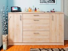 In the manufacture of this type of furniture, various materials are used, depending on this, the price of the product also differs. The most popular models are dressers from laminated particleboard, they differ in low price and pretty good quality. The advantages of this product can be considered:
