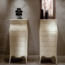 In the era of classicism, this piece of furniture was more often used as furniture for storing things.. Its appearance has become less catchy and flashy. The shape of the subject took on a clearer outline. Currently, designers are experimenting with the shapes, sizes, colors of the chest of drawers. Some of the models are found with tables, while others can be attached wheels for ease of movement. You can find products with an unusual shape, for example, in the form of a wave.