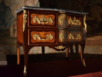 Some historians believe that this piece of furniture was invented in Italy or England. Even in Russia there is an interior item that may be the ancestor of this product. The chest of drawers gained popularity and mass distribution in the 18th century, during the Rococo era. More often such furniture was used as an element of decor, rather than for its functional purpose. The dresser of that time was often inlaid with various precious stones. They had carved legs and a convex shape.
