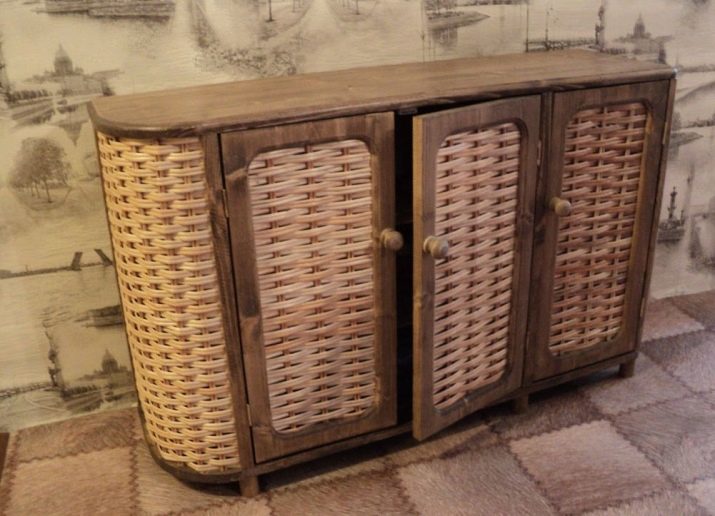The budget option will be the interior of veneer. Since such a product has a low price, it is easy to replace it if it becomes unusable. An interesting solution would be rattan furniture, it will fit perfectly into the country style interior. Such a piece of furniture will be the highlight of the hallway and will look elegant and stylish.
