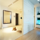 It may look like a hallway, which continues the corridor. Minimalistic solutions, clear geometry and interesting floor design - beautiful and stylish.