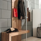 - built-in bench: it replaces sofas and banquets, it looks very reserved, but this is a practical and necessary detail (can be built into a headset module or a wardrobe);