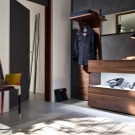 Furniture should be as practical as possible, without expressive decor, curls, protruding parts and colorful textures. Usually this is furniture made of wood, but in the hallway, for example, high-quality plastic. There can be a lot of furniture in a minimalist hallway, because in most cases the owners are limited to acquiring a shelf for shoes and a very concise cabinet (possibly a closet), where the outer clothing will be. In the spacious entrance hall, a console or chest of drawers, a hanging cabinet, a mirror, a free-standing coat rack for outerwear is possible.
