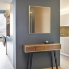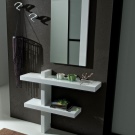 - a small mirror with a neat shelf under it: it replaces a more massive structure, it is important not to force the shelf with cosmetics and other small items that create chaos in the visual perception of the room;