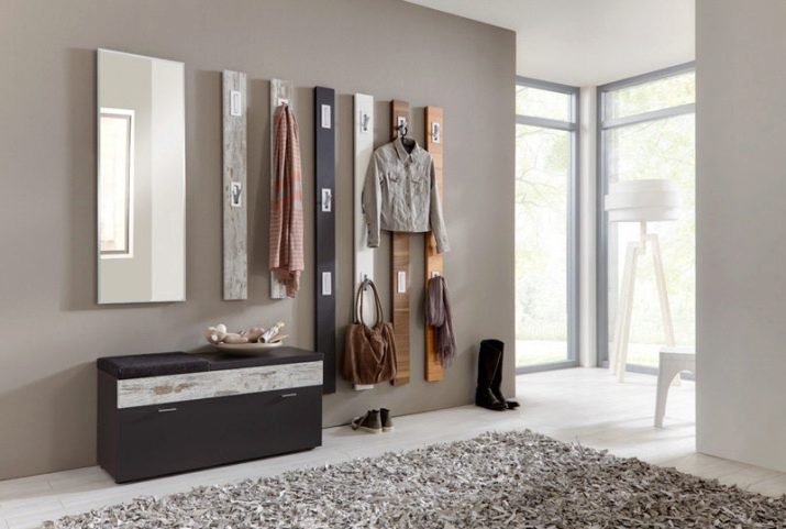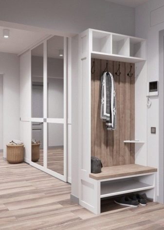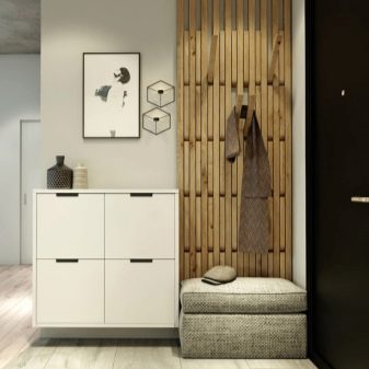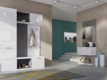 - a shoe rack and a hanger as the only elements of the hallway furniture, if it is very narrow, and then the apartment has a spacious storage system for outerwear, etc .;