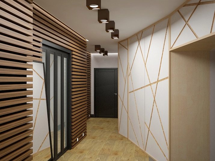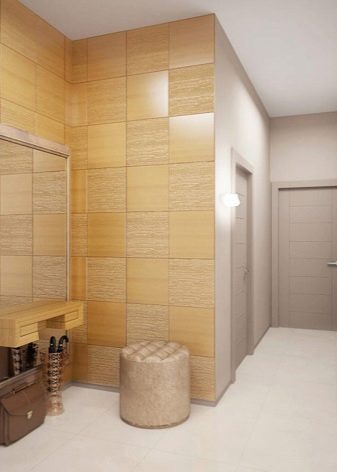 If the entrance hall is not the smallest, then its central wall can be decorated with a laminate, it looks stylish and interesting. However, a mirror can hang on such a wall and there is a console, nothing more.