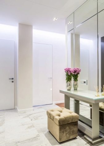 Another interesting option for apartments, where the entrance hall thus borders the corridor. A mirror plus white color - and the space in this room goes into the spotlight.