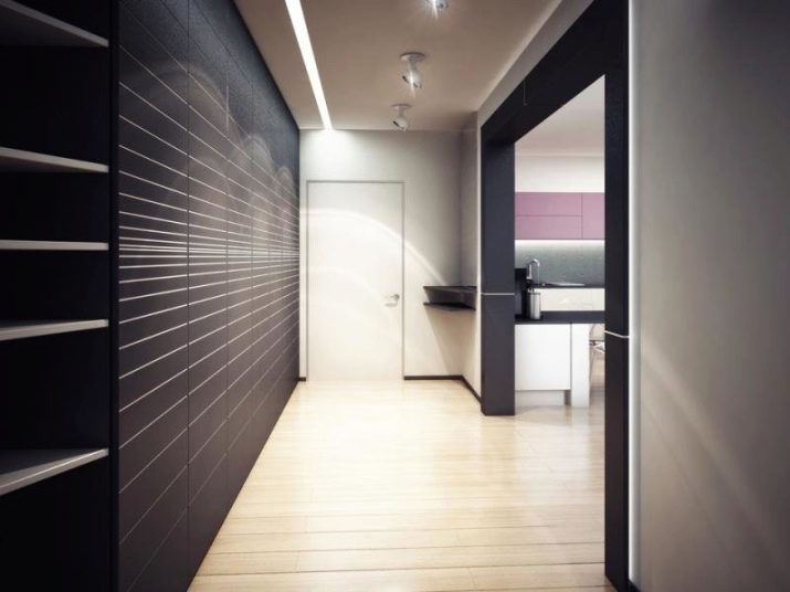 Rarely does an apartment boast a spacious entrance hall. In most typical apartments, many functions are assigned to this part of the dwelling, but there is a small footage. And the logical solution in this case seems to be the arrangement of the hallway in the style of minimalism.