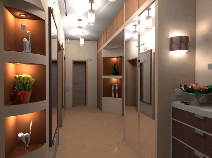 If the hallway is spacious, has a square or rectangular shape, any options for placing fixtures are possible. If the room is non-standard, a special approach is required here. The lighting scheme should be carefully thought out, because the design flaws should be turned into advantages if possible.