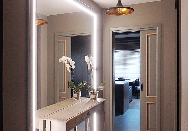 You can make it so that the light will turn on when the door is opened automatically. As for the mirror, the backlight can be mounted on the wall in the form of a sconce (on top or on the sides of the subject). You can also purchase a model in a luminous frame.