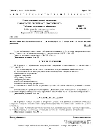The full list of works is set forth in the “System Programmer's Guide”, developed and executed in accordance with GOST 19.503-79 and the accompanying GOST 19. 101-77 (“Types of program documents”) and GOST 19. 105-78 (“General requirements for program documents”) .