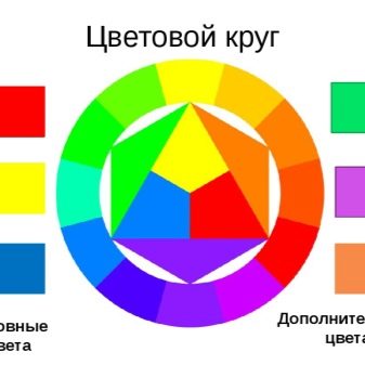 - Classic. Using an isosceles triangle. It combines the very yellow, blue and red - the basic tones. But if you shift the design, you can find a much more original combination. The main rule is to single out one main accent, without which the image will look too catchy.
