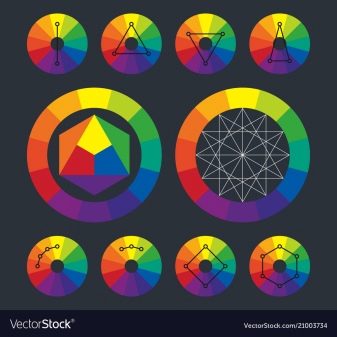 In the case of the Itten circle, shades equally spaced from each other are placed in the triangle of such a combination. The following options for the formation of harmonious combinations are distinguished.