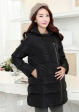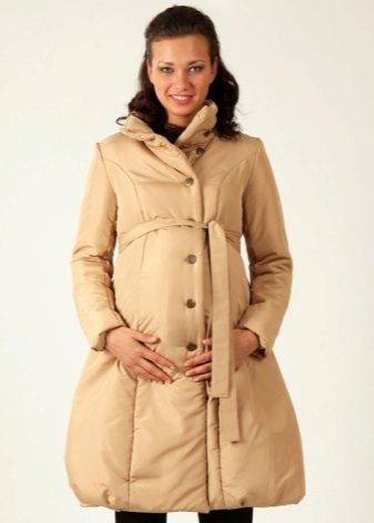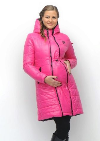 The optimal length of down jackets for pregnant women is from the middle of the thigh to the knee. Shorter models will not be able to protect the buttocks and lower back from the cold, and longer will be very problematic to fasten, because for this it will be necessary to bend down, and the tummy growing every day will not allow it to be done