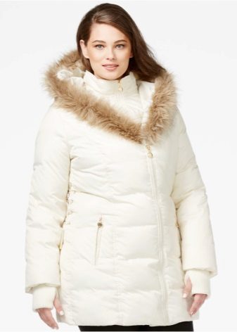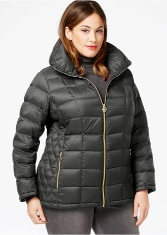 Ladies with a very voluminous silhouette do not fit tight-fitting models; loose down jackets with an unusual cut and original details that will distract attention from the problematic figure will look good on them.