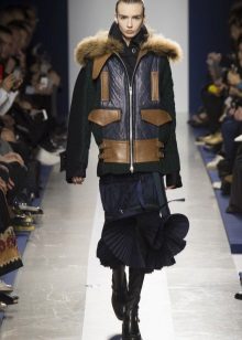 Most models of leather down jackets have a natural fur trim. This is due to the fact that, firstly, fur is very relevant today, and secondly, fur and leather are two materials that perfectly blend with each other, so designers do not need to come up with anything new.