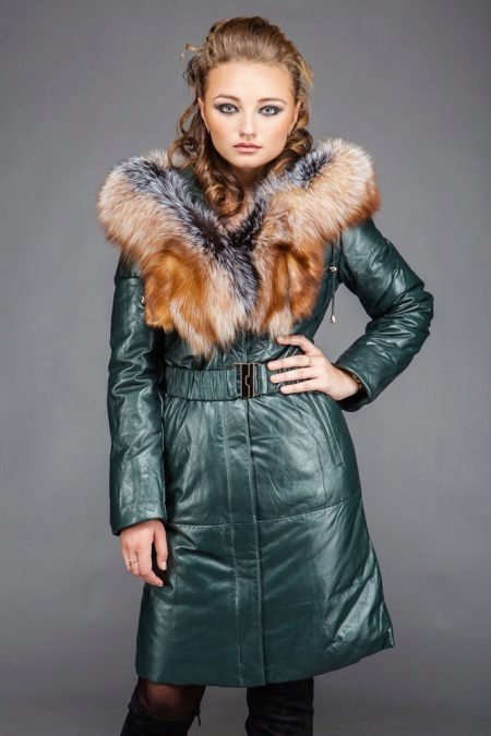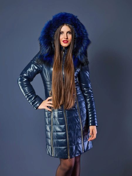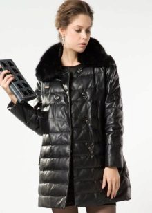Warm leather jackets up to the knee and below are usually chosen by those who have to walk a lot. They warm perfectly even in severe cold and, in addition, look very feminine and elegant. Leather down coats often have a waistline that accentuates the waist and a large fur collar.