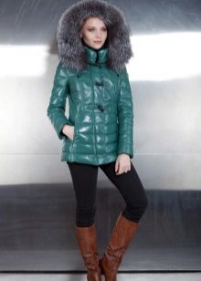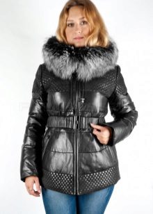 - Leather models usually have a beautiful decor. Even those down jackets that are made of artificial leather are finished with real fur. Finishes made of silver fox, mink, fox or raccoon cool decorate the product. Down jackets with natural fur look more stylish and expensive.