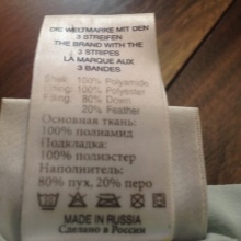If the label says "100% down", this means that the filler is fluff. The inscription “feather” means that the filler is fluff + feather. "Intelligentdown" - fluff + synthetic filler.
