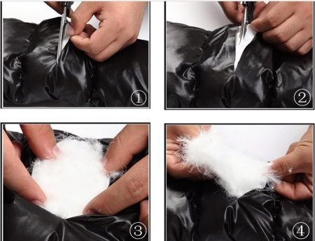 Often, a mixture of natural and artificial fillers is used as a filler for a down jacket. Sintepuh has excellent performance properties, it is very lightweight, retains heat perfectly, well tolerates washing and drying.