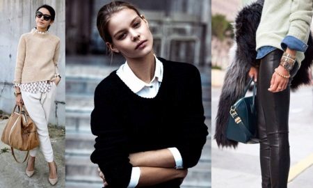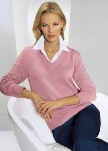 Today, a pullover is a basic wardrobe item, along with pumps, a white blouse and a pencil skirt. Current trends essentially do not change its appearance.