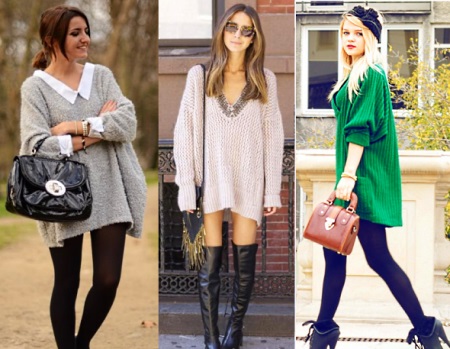 With a short pullover, tight-fitting pants with a high waist and a light blouse or top are perfectly combined.In the event that you bought a tight-fitting model, a tulip skirt is perfect, in extreme cases - spacious pants. The pullover dress perfectly emphasizes your forms and your personality.