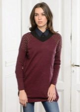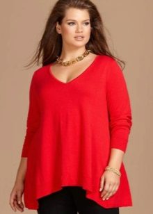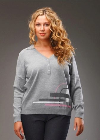 Ladies with curvaceous forms are advised to opt for solid models. The print makes the thing more voluminous, which means the figure seems more massive. It is best to choose pullovers in black, dark gray, burgundy, red or brick, etc.