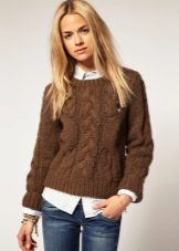 - At the peak of the season of recent years, there are knitted pullovers. Knitwear is a very practical material to wear, soft, light. For its production, different types of threads are used, starting from synthetics, ending with wool. To create a knitted fabric, a combination of several threads of different composition is often used. This makes it possible to obtain a smooth or openwork canvas.