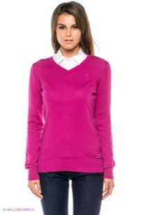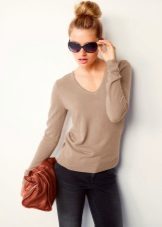 To create a suitable option for the office, you can choose a plain pullover from thin knitwear or viscose. The model may have a fitted or straight cut. Classic trousers and a pencil skirt are great for such a pullover.