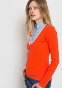 In the winter season, you can pick up a pullover from a denser yarn or wear a classic-cut shirt under it. To make such an outfit look as stylish as possible, it is better to choose things in a contrasting color.