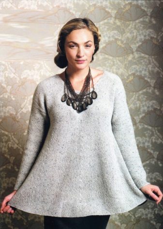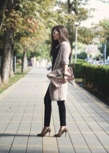 Pullovers made of thin yarn can be supplemented with knitted cardigans, jackets and jackets made of dense suit fabric.