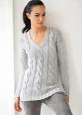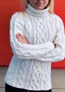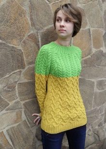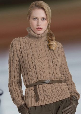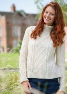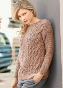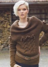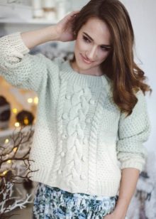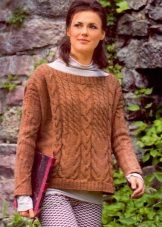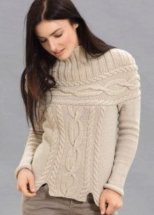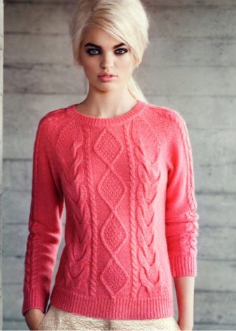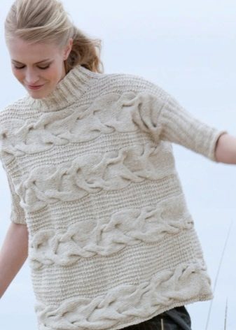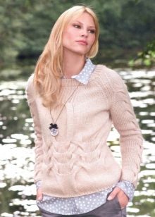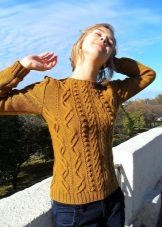 A pullover decorated with tied braids is a beautiful thing in your wardrobe. Various types of braids can be located only on the sleeves or only on the yoke. The pullover, consisting of braids alone, is stylish and unusual.