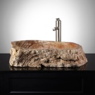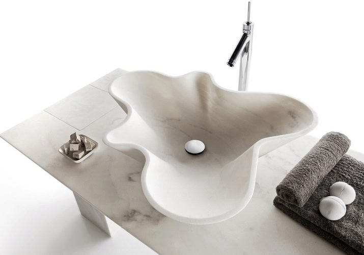 - Models of sinks of complex and unusual shapes. As a rule, here we mean creative author's models of sinks in the most unusual design. It can be sinks with two faucets (or plums), models made in the form of flower petals, fonts with holes cut directly in natural stone.