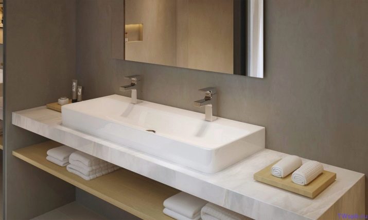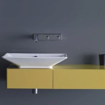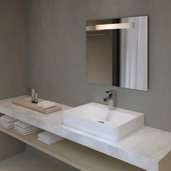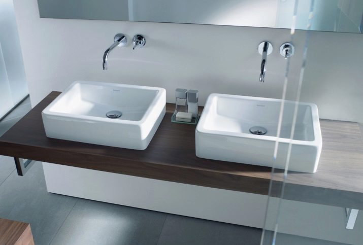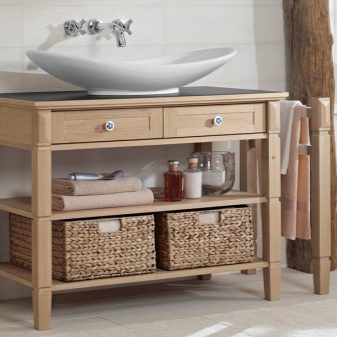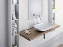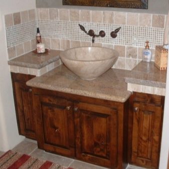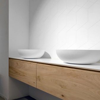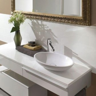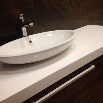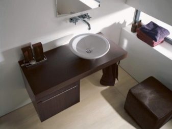 It will also be worthwhile to pay attention the choice of the countertop itself for the installation of a washbasin. The standard option in this case are models made of wood, plastic or MDF.