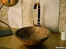 - Style. When choosing a specific model of the overhead sink, it’s not enough to dwell on some beautiful washbasin. It should be in harmony with the chosen style decision of the room, as well as with its color background.