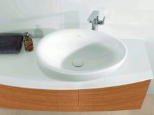- Accessories When choosing a washbasin sink, focus not only on the unit itself, but also on the sizes of related accessories. For example, if you bought a deep model of a laid-on sink, low taps here will not fit either in terms of practicality or in appearance. If you are more inclined towards practicality when choosing a wall-mounted design than towards appearance, you can buy sink models with two taps, offset drain or special openings for bath accessories.