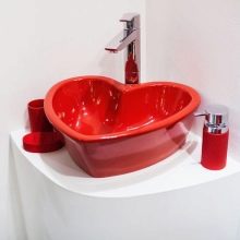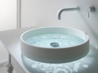 - Design. In the case of overhead washbasin models, you have a huge choice among the possible design options and design of such structures. The ability to install anywhere led to the creation of completely non-standard shapes and sizes from a wide variety of materials. Such a sink can not only become practical furniture, but also effectively complement the interior of the room and even become its compositional center.