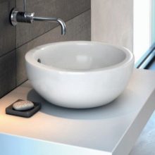 - Round bowls or bowls. Today, this variety is justifiably considered classic. Small round sinks are suitable only for washing hands, while large ones can be used for washing your hair, dishes, or even become a full font for a child. Another plus of round sinks is the fact that they can be approached from any direction.