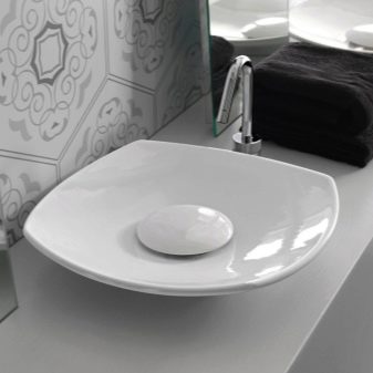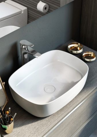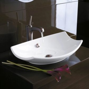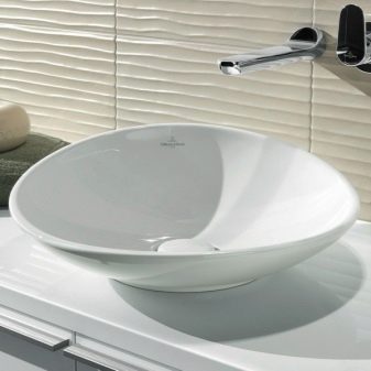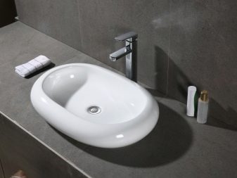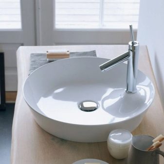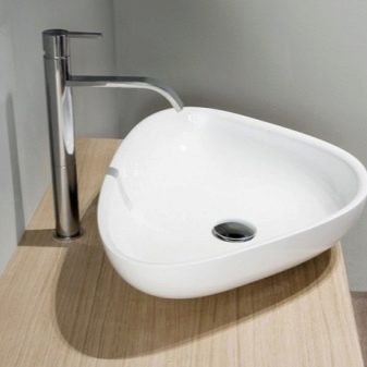 There is a whole classification that is responsible for the variety of shapes of overhead sinks for bathrooms. It includes round (bowl-shaped), oval, triangular, rectangular shell models, as well as models of non-standard and asymmetric shapes. When choosing an overhead sink of a certain shape, you should focus on an existing design in the room.