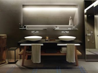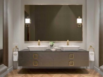 - Art Deco. This is perhaps the richest and most demanding style among the rest. In such bathrooms only expensive versions of oval or square porcelain or earthenware sinks will look successful. The color here is usually chosen white, cream or dark.