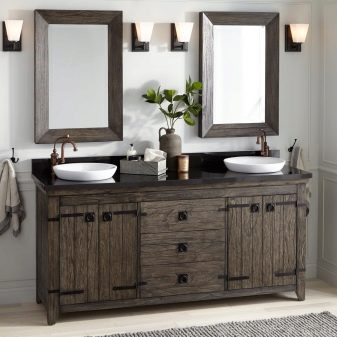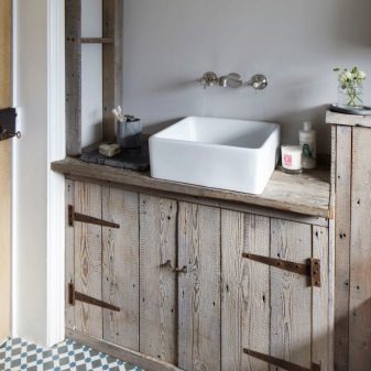 - Country. This style loves warm and pastel shades, in addition, in such a design, stone and wooden textures of the countertop or the washbasin itself are often found.