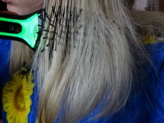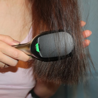 Ions come out of a special nozzle, which is illuminated by a small twinkle of green. The manufacturer strongly recommends that you do not cover it with your finger during the combing process, as this can affect the correct and effective operation of the brush.