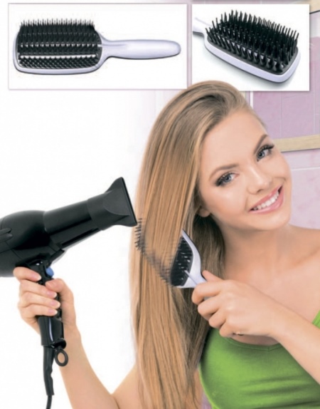 These are products of a well-known Israeli manufacturer. They are comfortable in shape, lightweight, with soft teeth and a ceramic coated base. Such accessories wonderfully smooth hair and help remove static electricity.