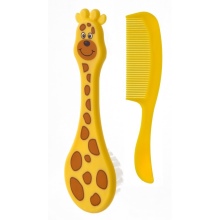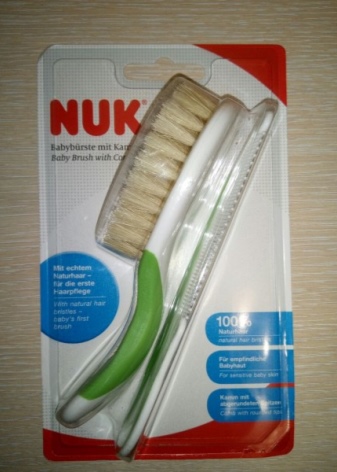 - Nuk- in many ways similar to Chicco.The set includes a comb and a brush with natural pile. The handles are rubberized. Sets are available in several colors. Suitable for babies from 0 to 12 months.