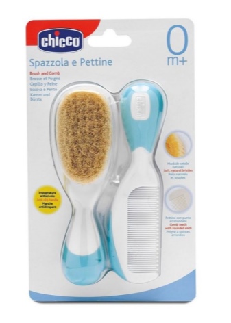 - Chicco - baby accessories for this company can be bought in many children's departments. They are of different colors, suitable for both girls and boys. There are neutral colors. The handles of combs are rubberized and do not slip out of the hands. And the tips of the scallop teeth are complemented by round balls to avoid scalp injuries.