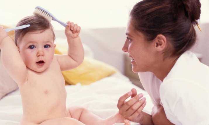 - With the help of special children's brushes, mom can do a baby head massage. It improves skin circulation and stimulates hair follicles. Thanks to this massage, the growth of the first hair of the child is accelerated.